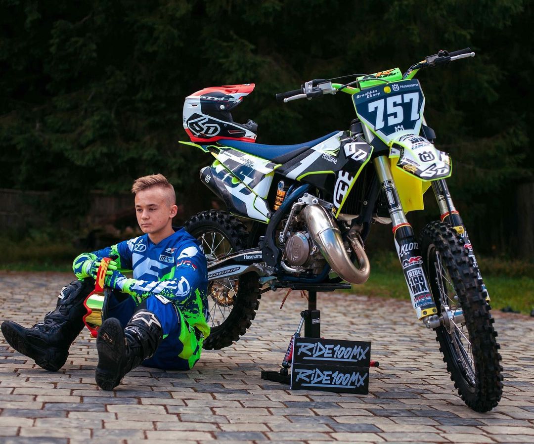 С 6 лет Елисей принимает участие в соревнованиях на кроссовом мотоцикле КТМ-50.