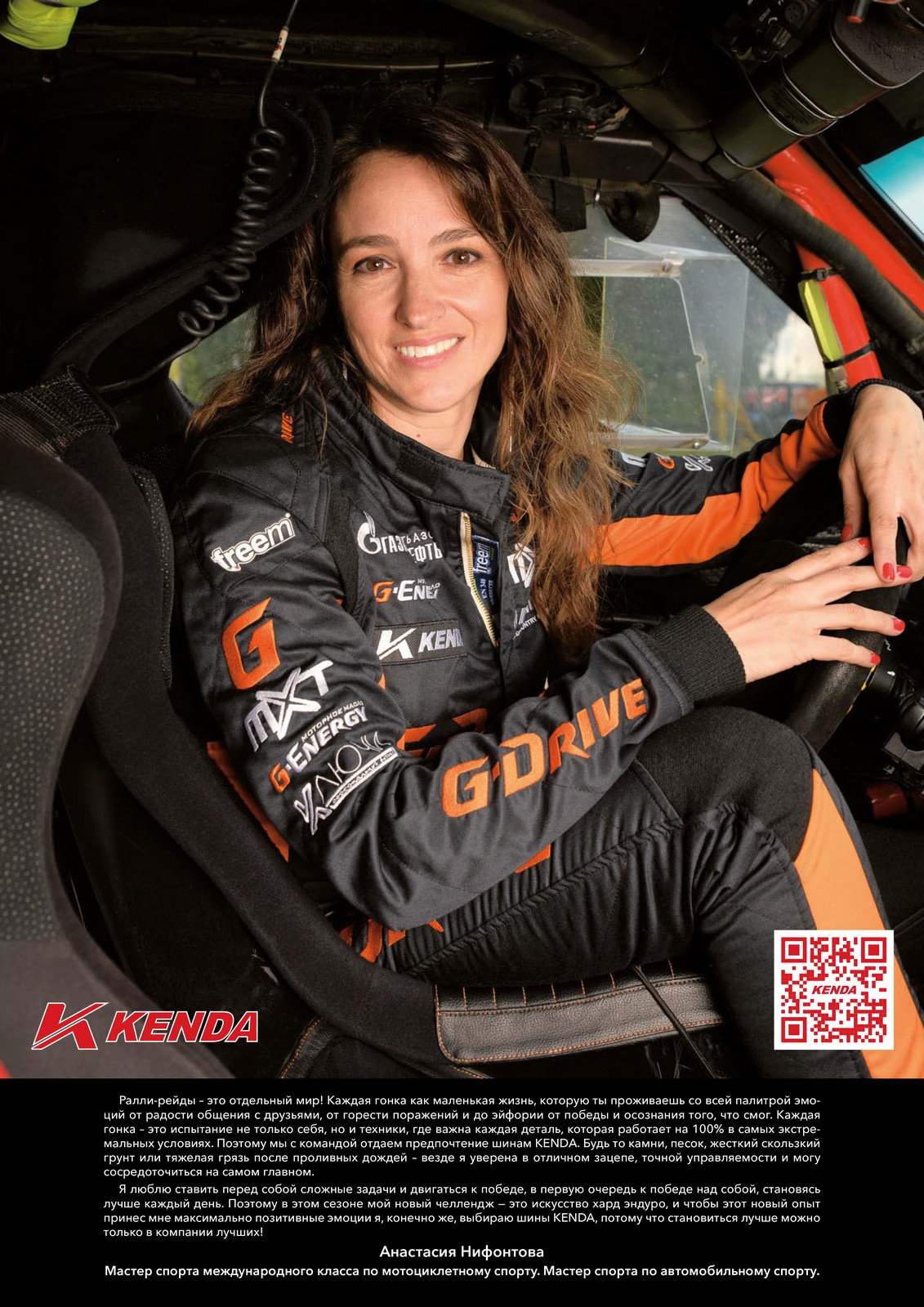 Второй год подряд KENDA готовит и печатает календарь, посвященный шинам КЕНДА с кем-нибудь из своих российских райдеров. В этом году лицом календаря КЕНДА в России стала Анастасия Нифонтова @nifontova13 - мастер спорта международного класса по мотоциклетному спорту и мастер спорта по автомобильному спорту.