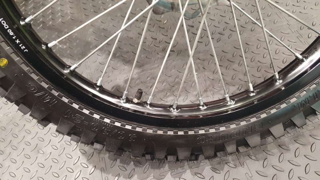 Спереди установлены Kenda K777F Enduro. Эти спортивные шины класса Enduro соответствуют стандартам глубины протектора FIM 13 мм. Шины слойности 4PR – подходят для езды на большие расстояния.